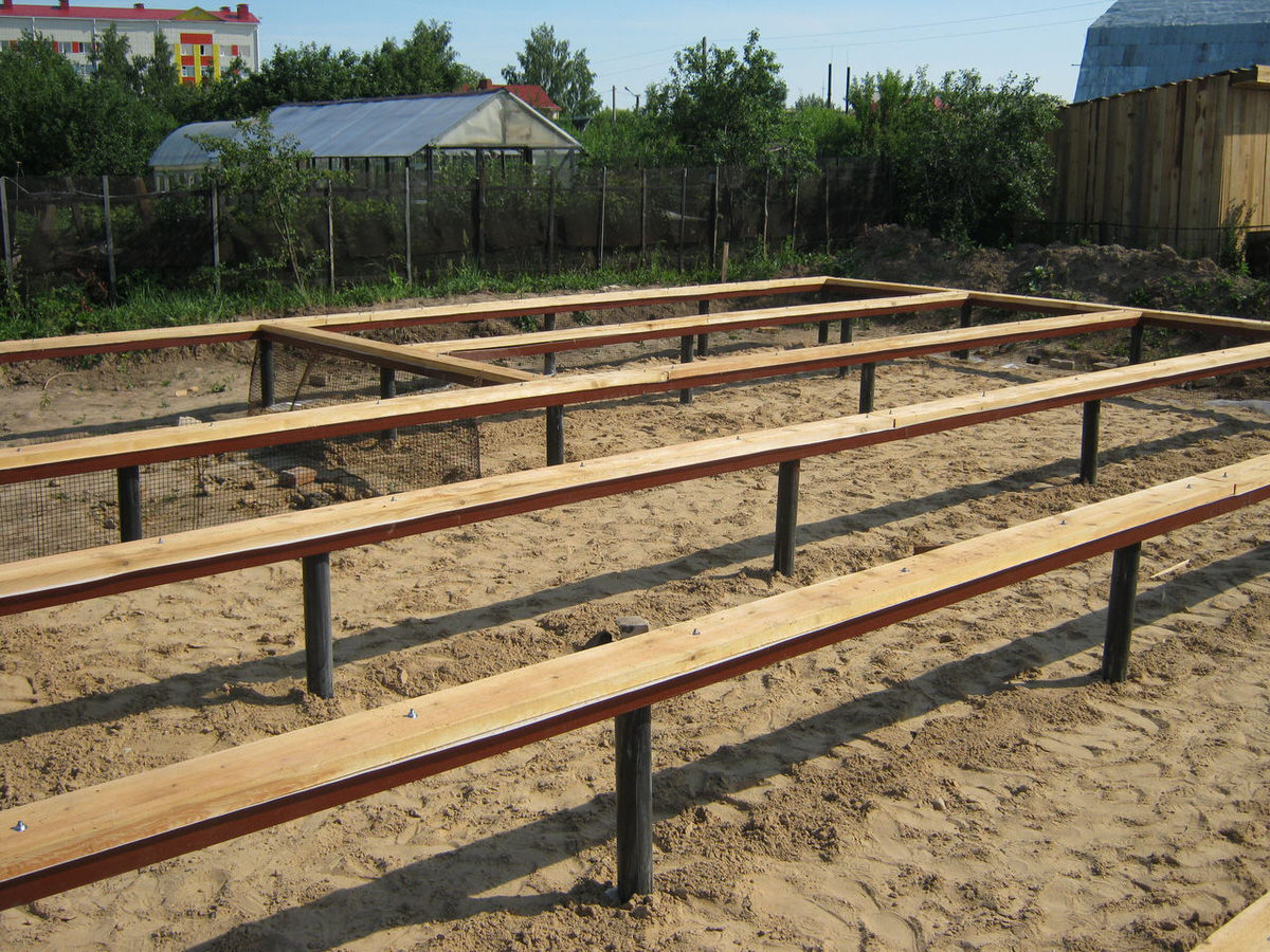 Фундамент этого типа подходит для всех типов грунта, в том числе для песчаных и глинистых почв, при большом содержании мусора или щебня, а также при наличии значительного перепада рельефа и при неглубоком залегании грунтовых вод.