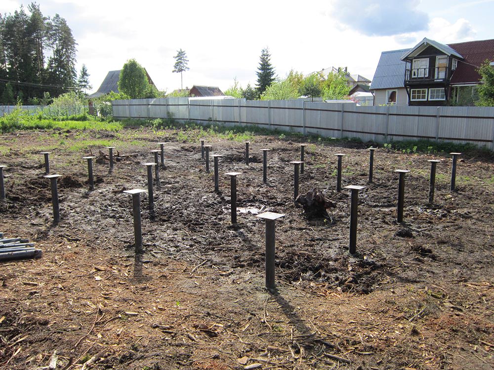 Для установки фундамента на сваях достаточно 1-2 дней. После установки не требуется ждать высыхания и усадки основания.